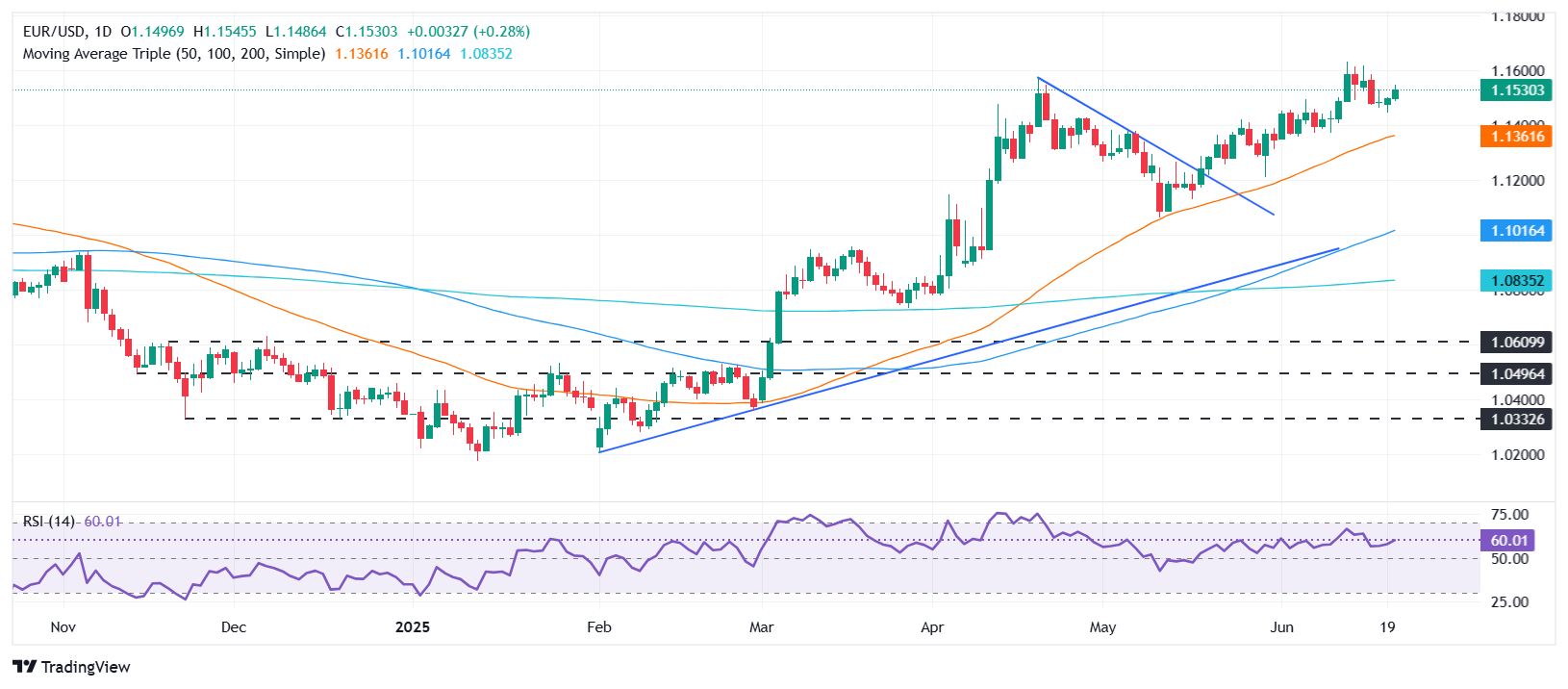 The Euro recovers some ground against the US Dollar on Friday and is set to finish the week virtually flat as risk appetite deteriorates. This is taking place despite US President Donald Trump delaying a military intervention in the Israel–Iran conflict. At the time of writing, the EUR/USD trades at 1.1534, up 0.36%.