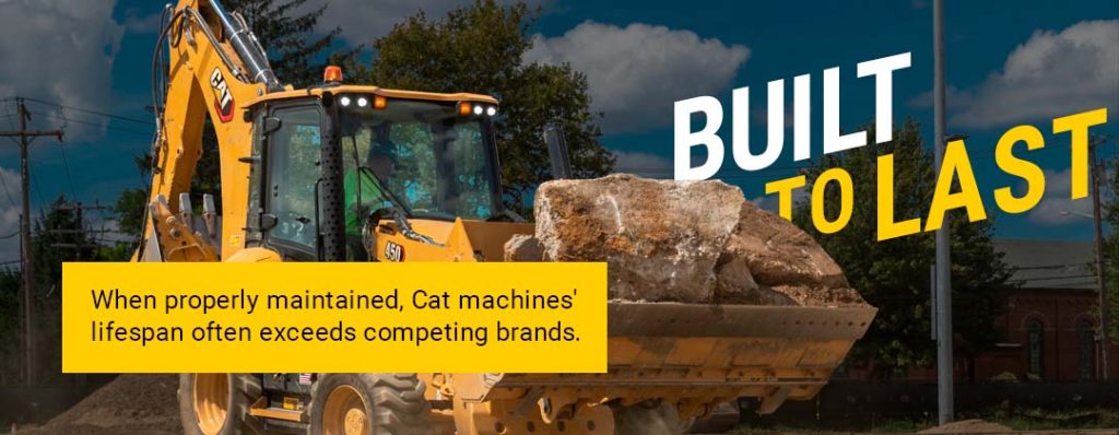 Cat equipment lasts longer because of superior materials, rigorous quality control, innovative engineering and preventive maintenance features built into every machine. When properly maintained, many Cat machines run well beyond standard industry hours.